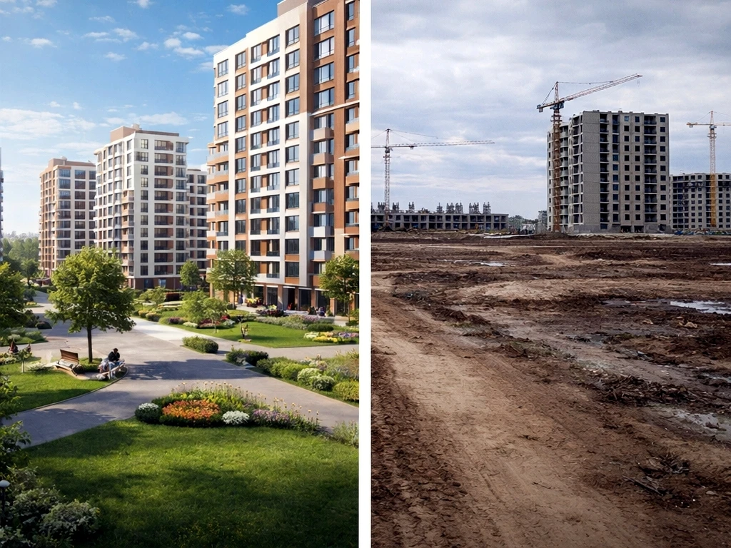 а по факту - пустырь, никакой инфраструктуры и час в пробках каждый день 🚗