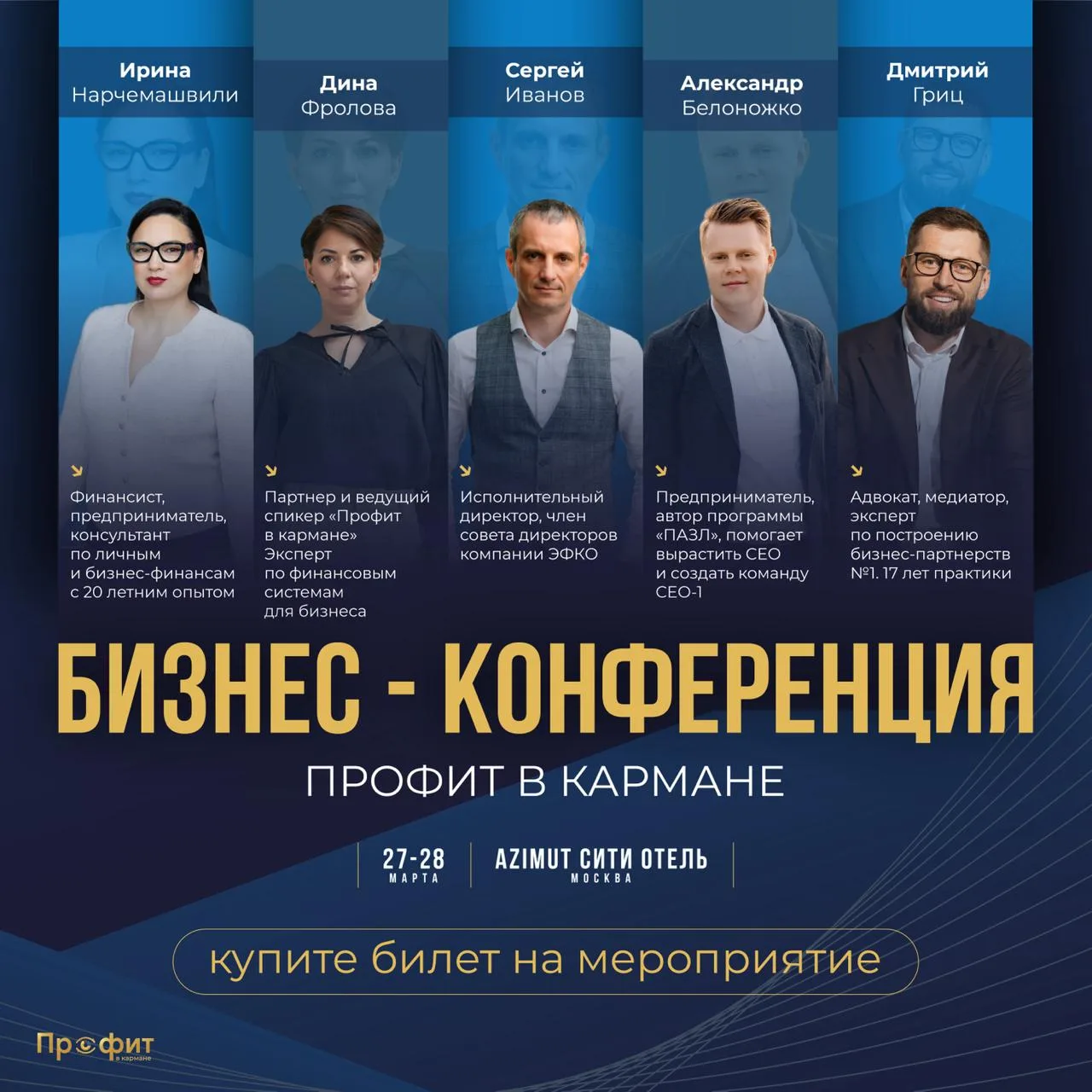 Поэтому искренне советую обратить внимание на конференцию «Люди в бизнесе» в Москве. Её делают мои друзья — команда «Профит в кармане». Это компания, которые годами работают с реальным сектором: заводами, стройкой и крупным ритейлом.
