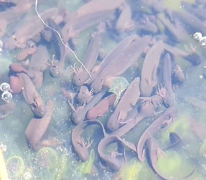 Сейчас хорошо видны ветвистые, как оленьи рожки, наружные жабры по бокам. Позже эти наросты исчезнут, вместо них появятся жабры обычные, а головастики обретут привычный нам всем вид.