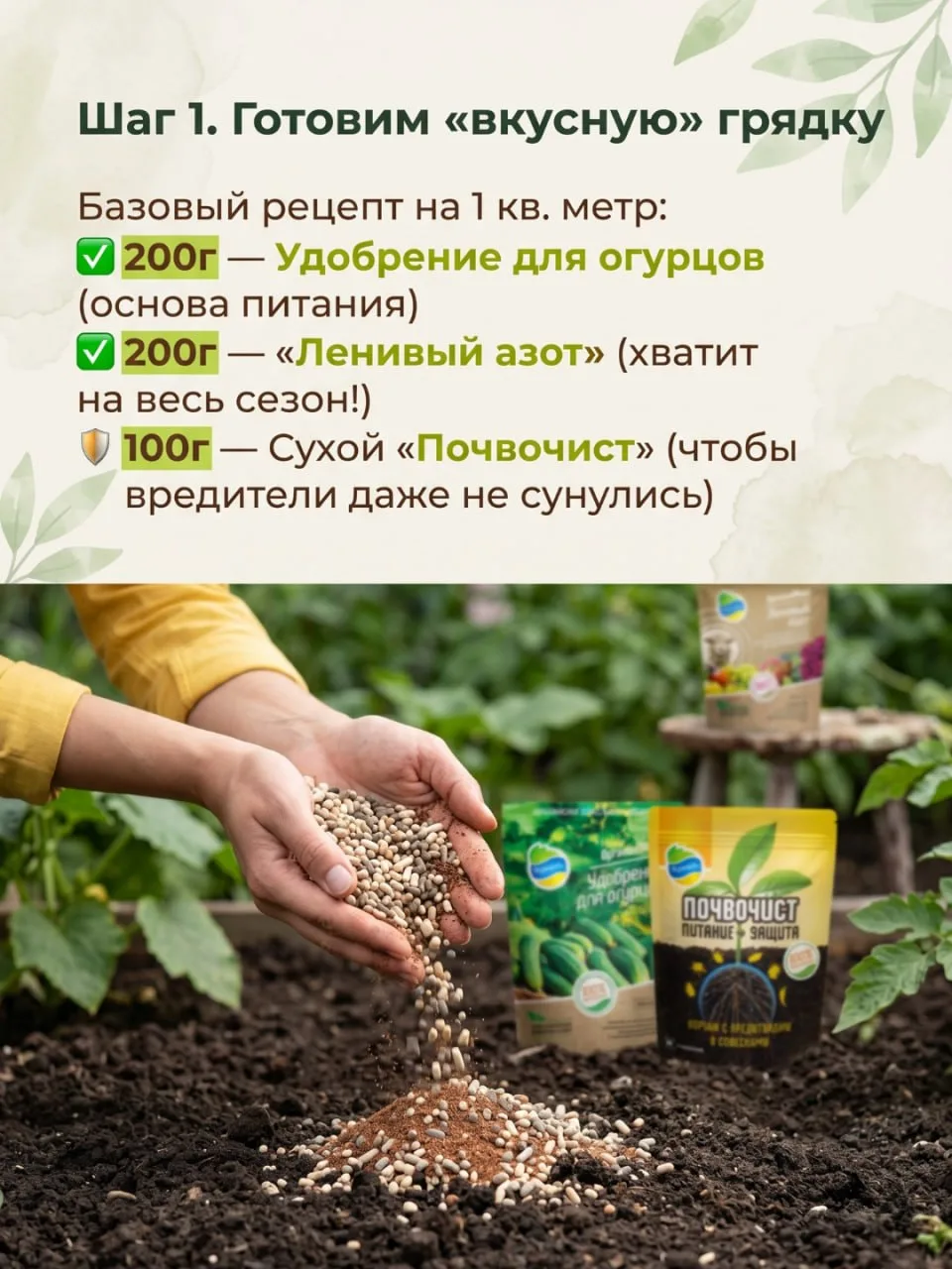 ⬇️ Разбираем пошаговый алгоритм: как правильно подготовить грядку под огурцы, чтобы собирать урожай до октября.