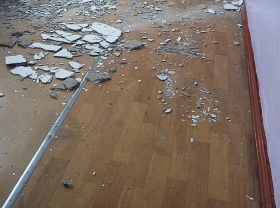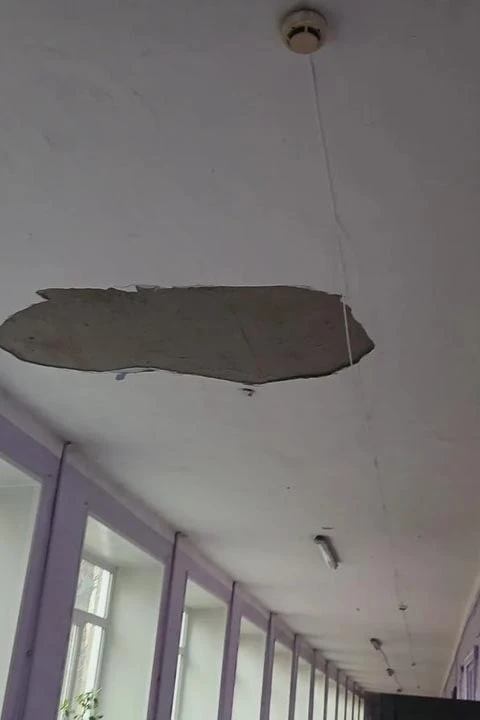 В коридоре одной из школ Черногорска произошло обрушение части штукатурки.