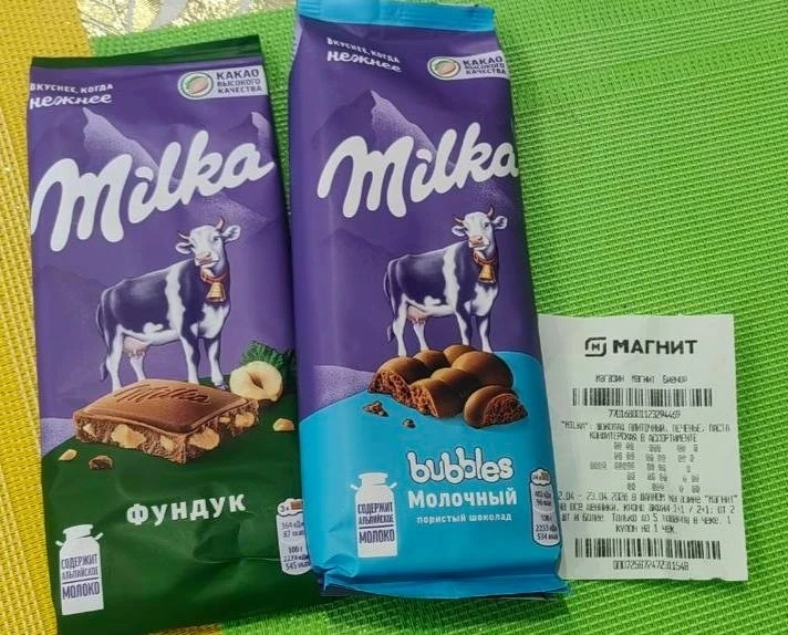 Сегодня в «Магнит у дома» выдают купоны -40% на шоколад Milka за покупки от 100₽.