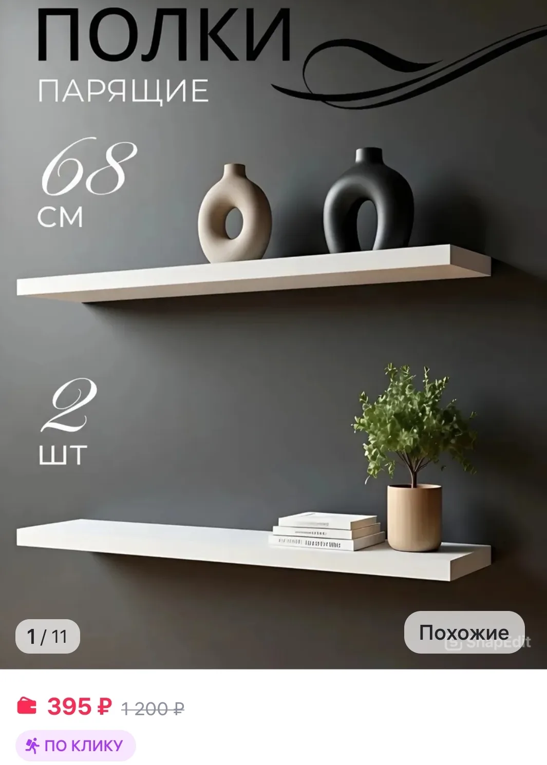 Полки настенные навесные парящие белые с крепежом 2 шт КОРОЛЬ КОМОД