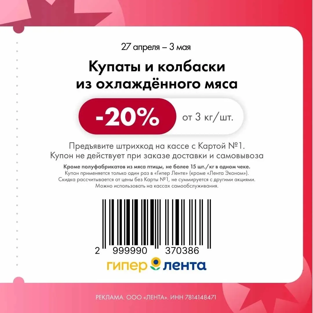 Купоны действуют с 27 апреля по 3 мая🍖