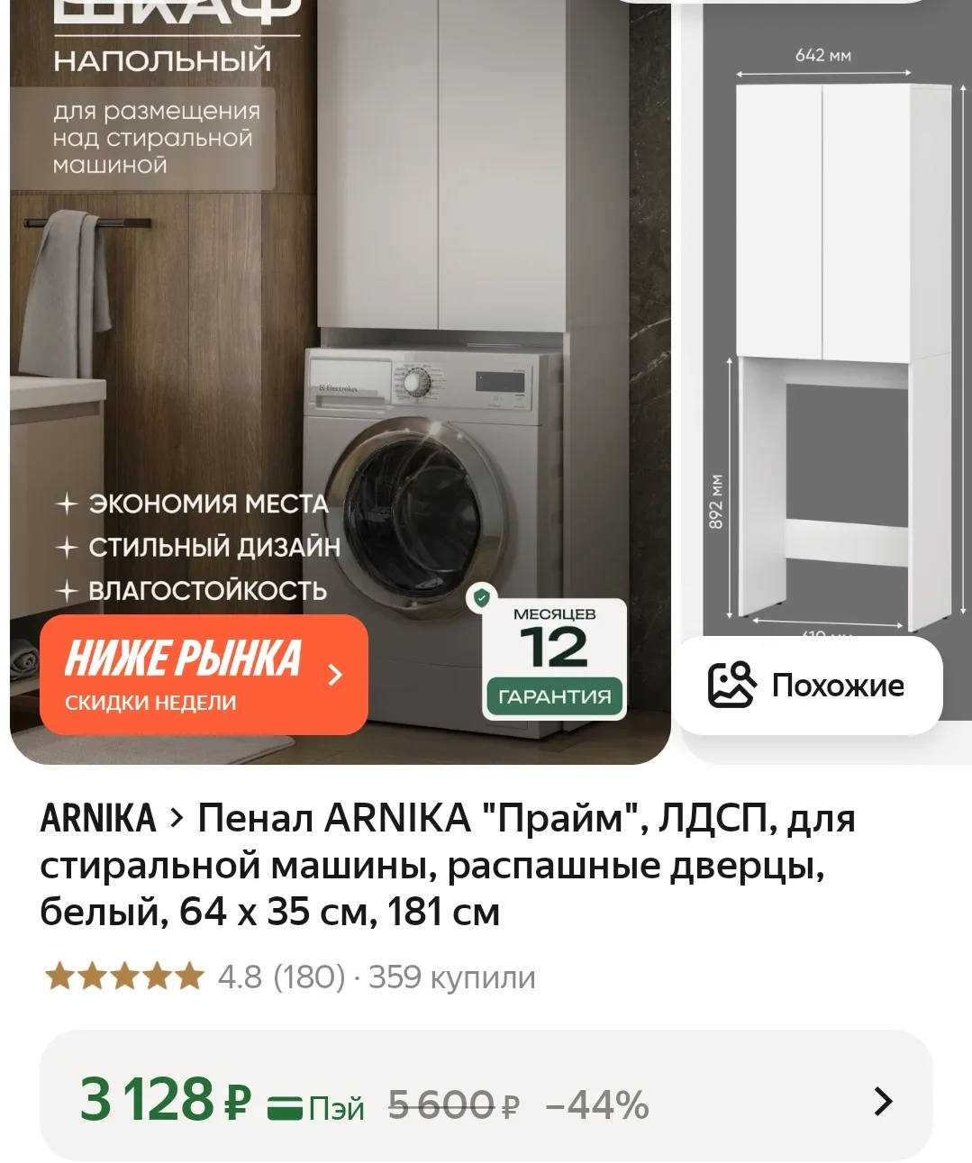 Пенал ARNIKA "Прайм", для стиральной машины.