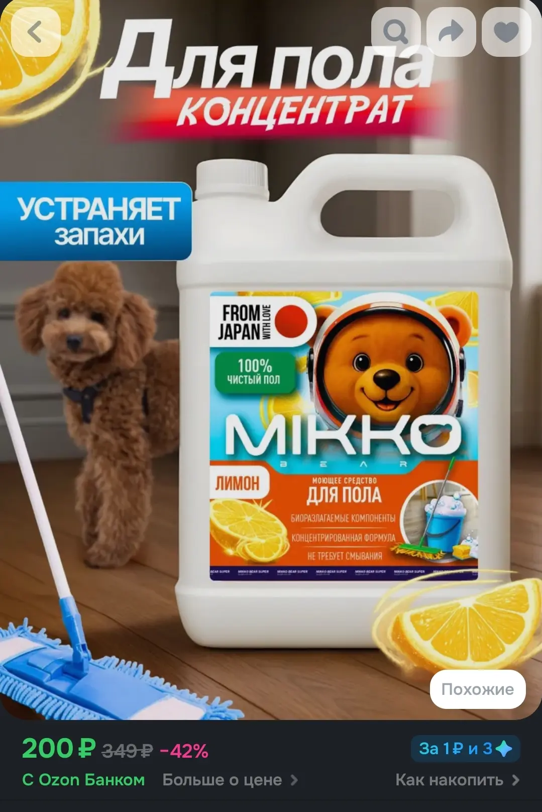 Средство для мытья полов 5л, концентрат для пола 5л, MIKKOBEAR с ароматом…