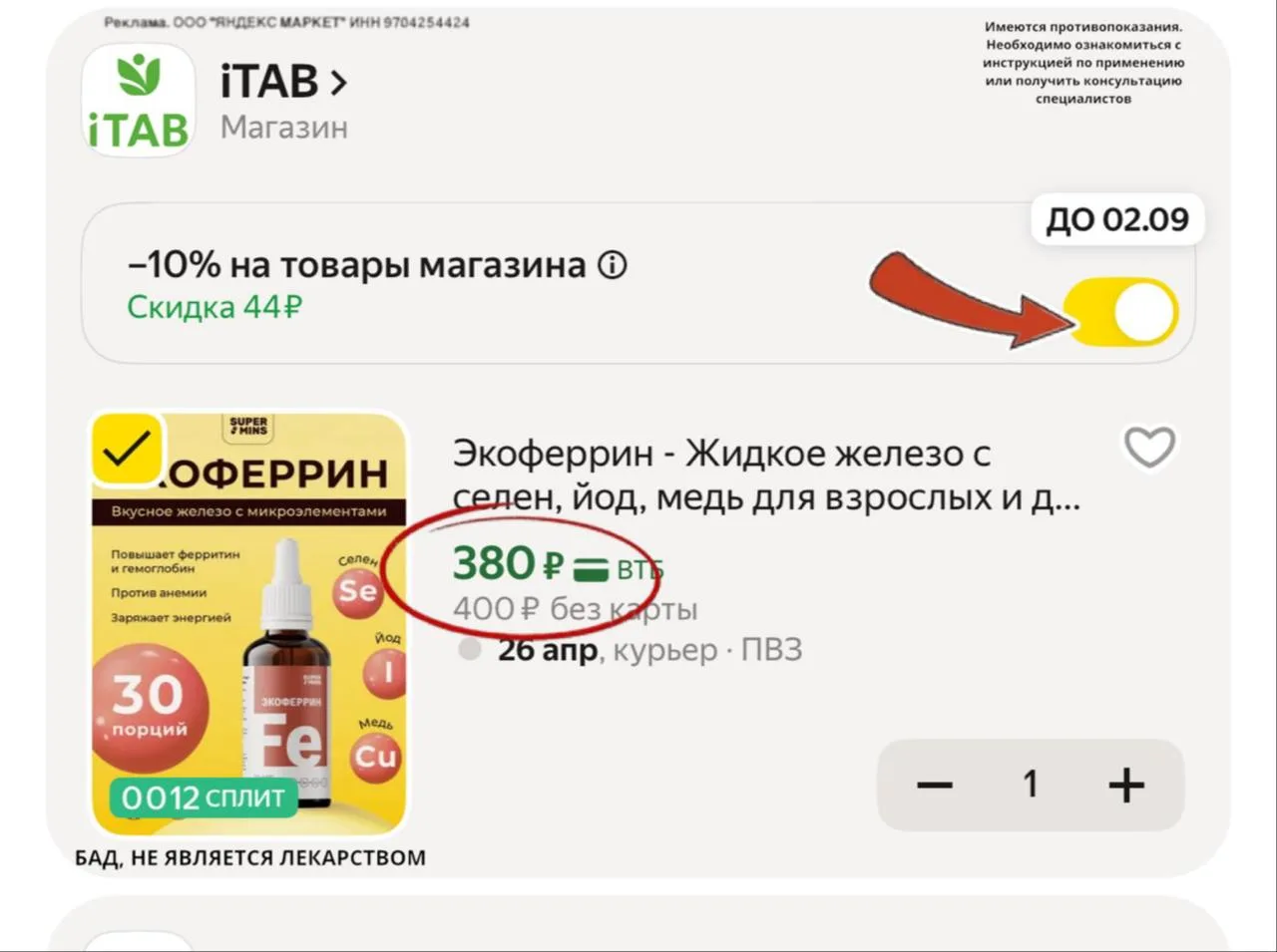 -10% скидка в корзине,нужно сдвинуть бегунок ⏺️