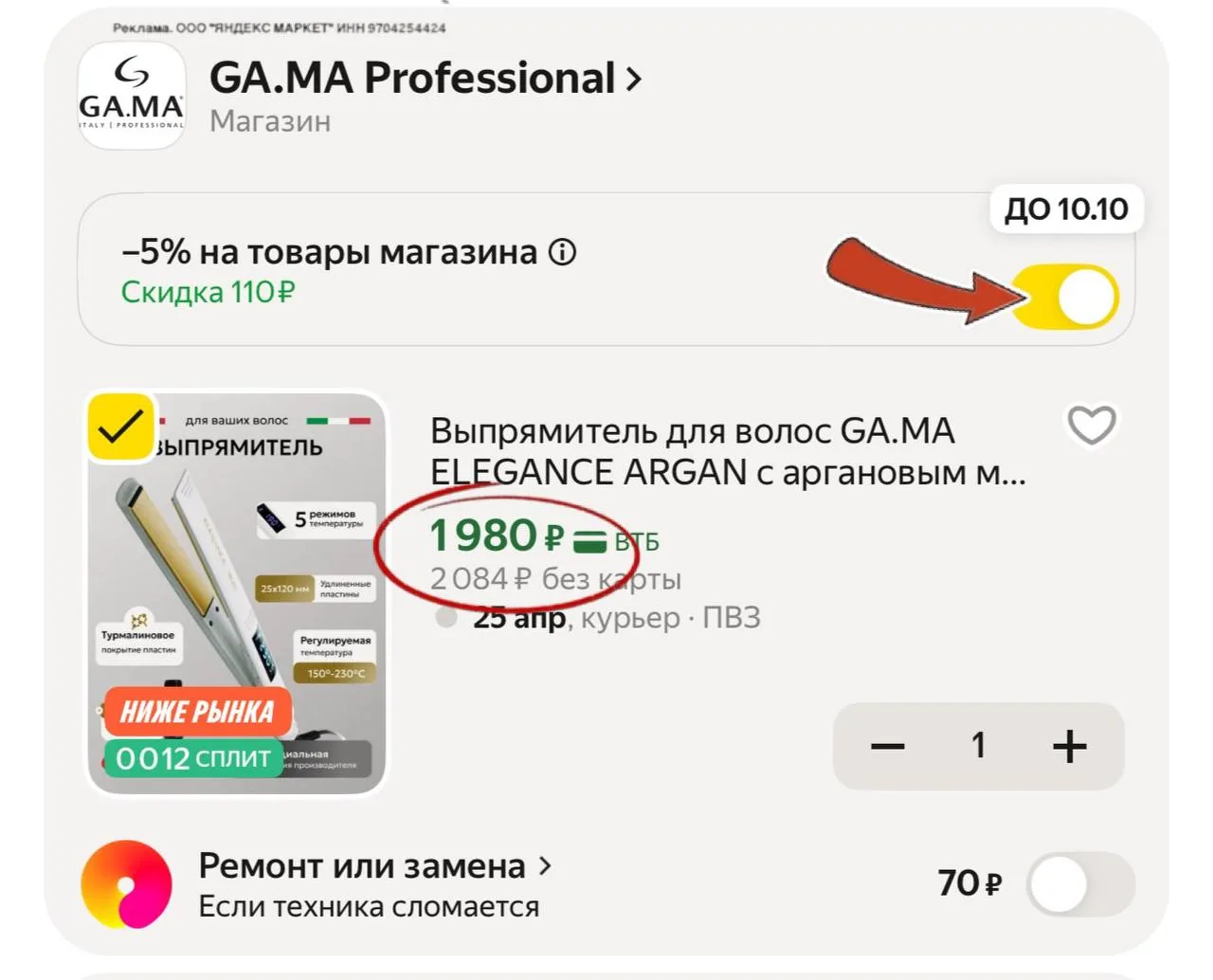-5% скидка в корзине,нужно сдвинуть бегунок ⏺️