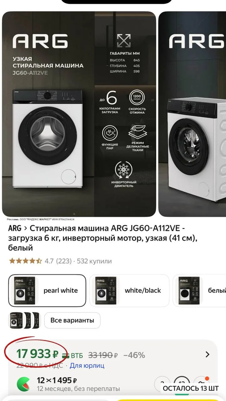 💻 Стиральная машина ARG 6 кг, инверторный мотор🔥