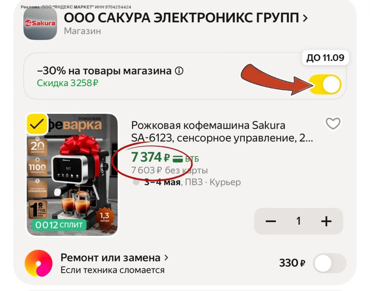 -30% скидка в корзине,нужно сдвинуть бегунок ⏺️