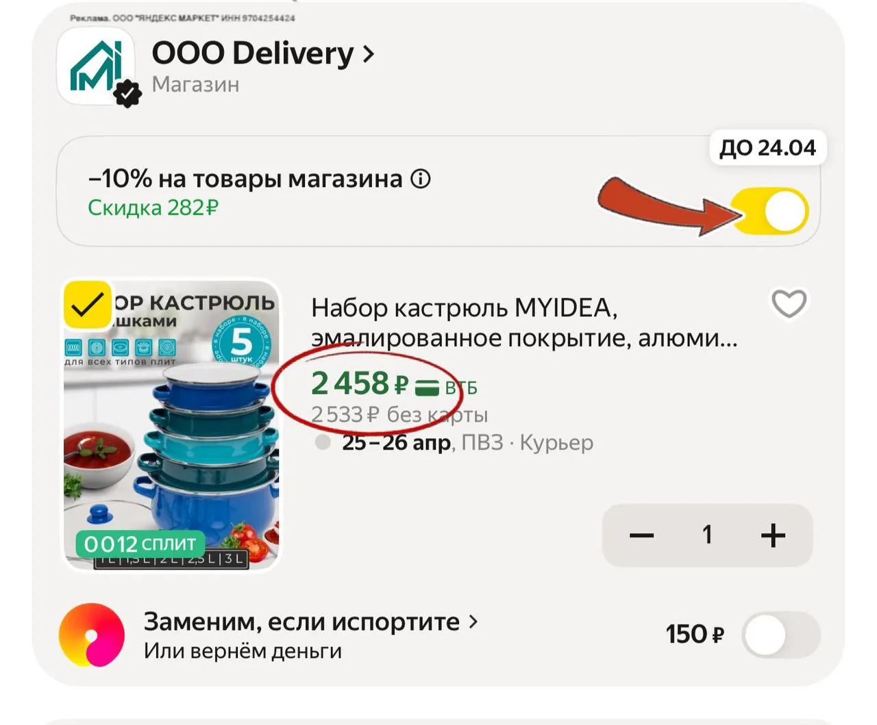 -10% скидка в корзине,нужно сдвинуть бегунок ⏺️