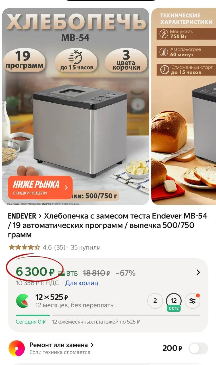 💻 Хлебопечка с замесом теста Endever MB-54