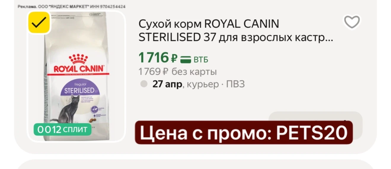 Цена с промо: PETS20