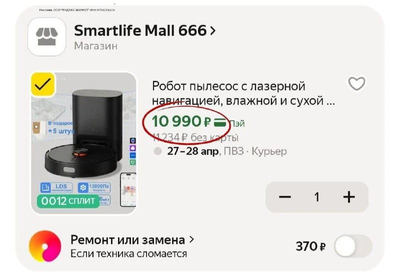 💻 Робот пылесос с лазерной навигацией, влажной и сухой уборкой, 13000Па, совместим с Алисой Lydsto R1 Edge