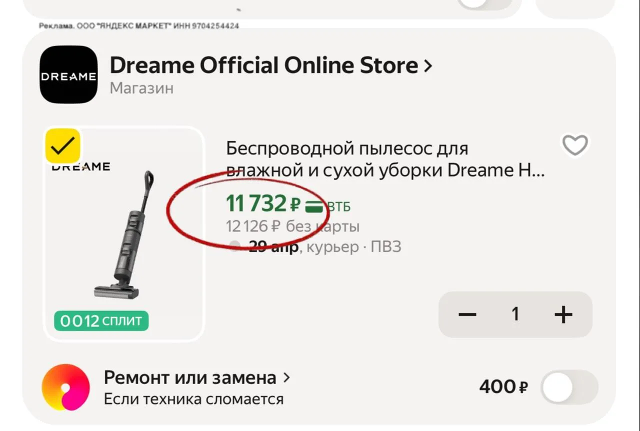 💻 Беспроводной пылесос для влажной и сухой уборки Dreame H11 Core