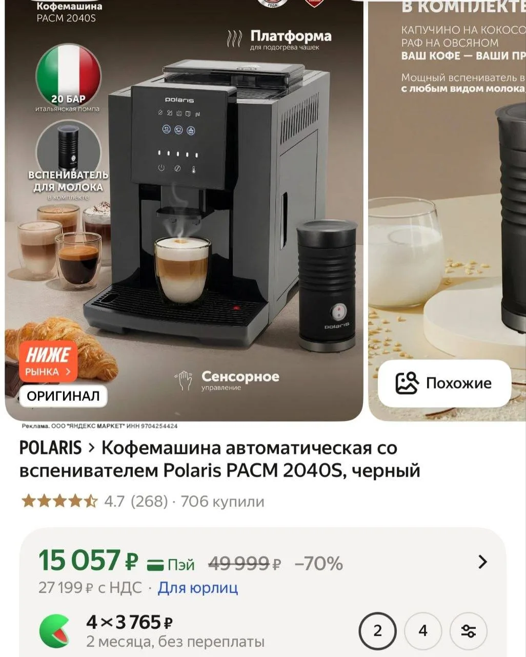 💻 Кофемашина автоматическая со вспенивателем Polaris PACM