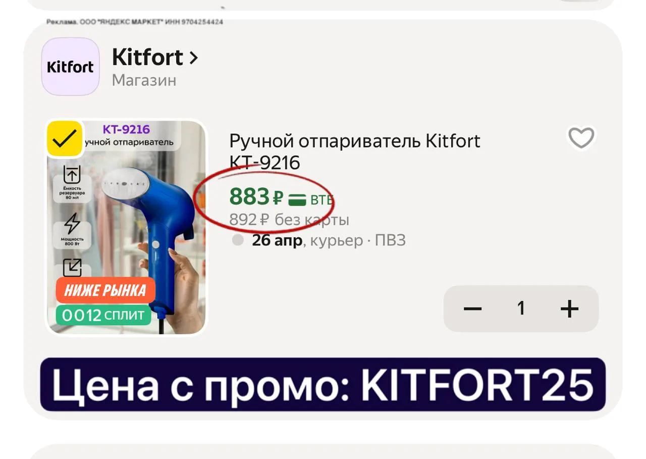 СКИДКИ_MAMA 23 апреля 2026 💻 Ручной отпариватель Kitfort 📖 ~1 мин чтения 💬 Открыть пост в MAX 💻 Ручной отпариватель Kitfort ➡️ ССЫЛКА ДЛЯ ЗАКАЗА Цена с промо: KITFORT25 Больше публикаций — в канале «СКИДКИ_MAMA» 📢 Подписаться на канал