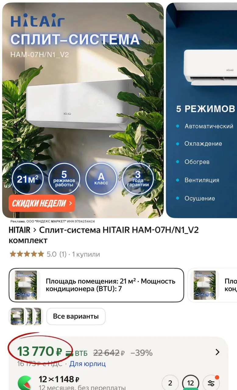 π» Π‘ΠΏΠ»ΠΈΡ-ΡΠΈΡΡΠ΅ΠΌΠ° HITAIR HAM-07H/N1_V2 ΠΊΠΎΠΌΠΏΠ»Π΅ΠΊΡ