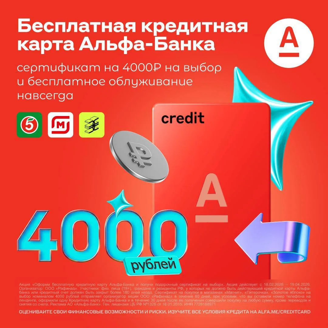 **(кроме переводов и снятия со счета)**➖Получаем сертификат на 4000₽ на выбор: