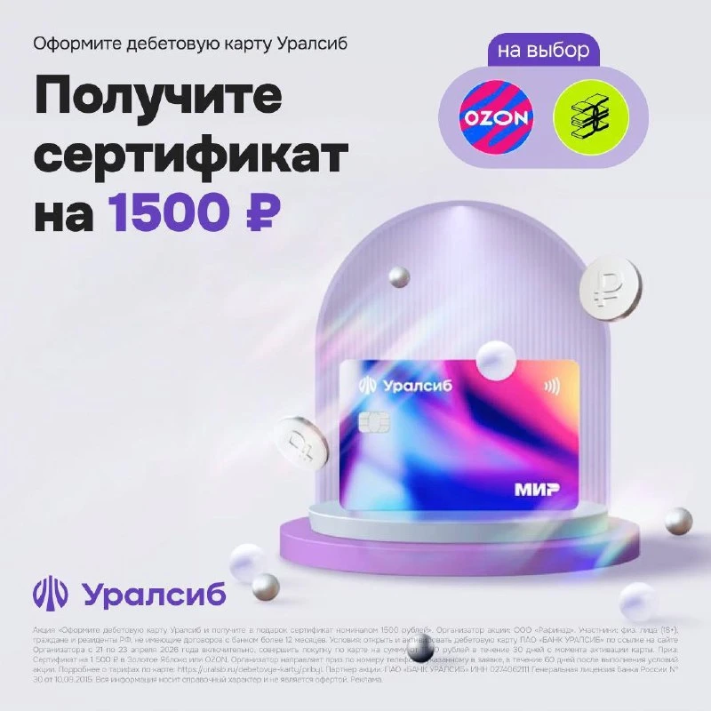 Успейте воспользоваться акцией от Банка Уралсиб с бесплатной дебетовой картой Прибыль!