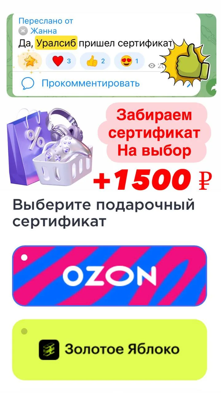 🚨 забираем сертификат на 1000 ₽ 1️⃣5️⃣0️⃣0️⃣🤑‼️за оформление дебетовой карты от Уралсиб