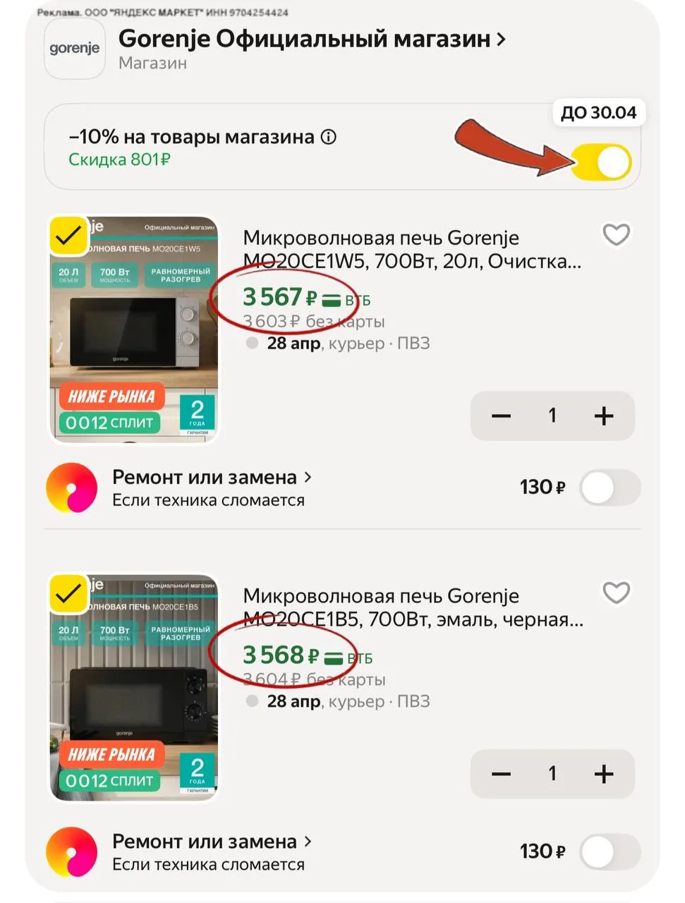 -10% скидка в корзине,нужно сдвинуть бегунок ⏺️