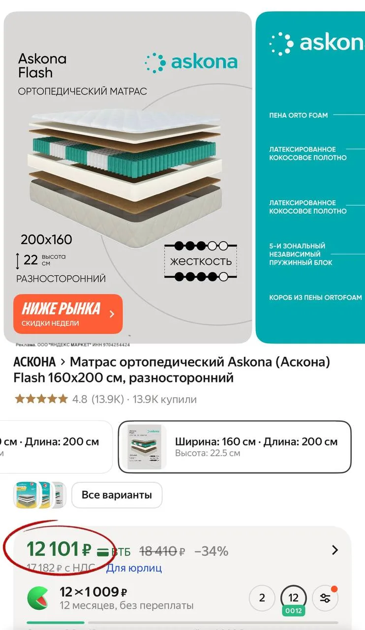 📢 Подписаться на канал💻 Матрас ортопедический Askona 160х200 см