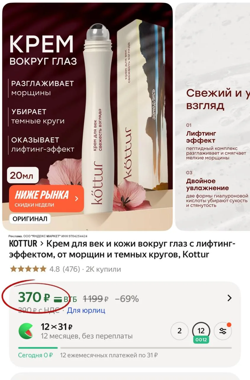 π» ΠΡΠ΅ΠΌ Π΄Π»Ρ Π²Π΅ΠΊ ΠΈ ΠΊΠΎΠΆΠΈ Π²ΠΎΠΊΡΡΠ³ Π³Π»Π°Π· Ρ Π»ΠΈΡΡΠΈΠ½Π³-ΡΡΡΠ΅ΠΊΡΠΎΠΌ, ΠΎΡ ΠΌΠΎΡΡΠΈΠ½ ΠΈ ΡΠ΅ΠΌΠ½ΡΡ ΠΊΡΡΠ³ΠΎΠ², Kottur