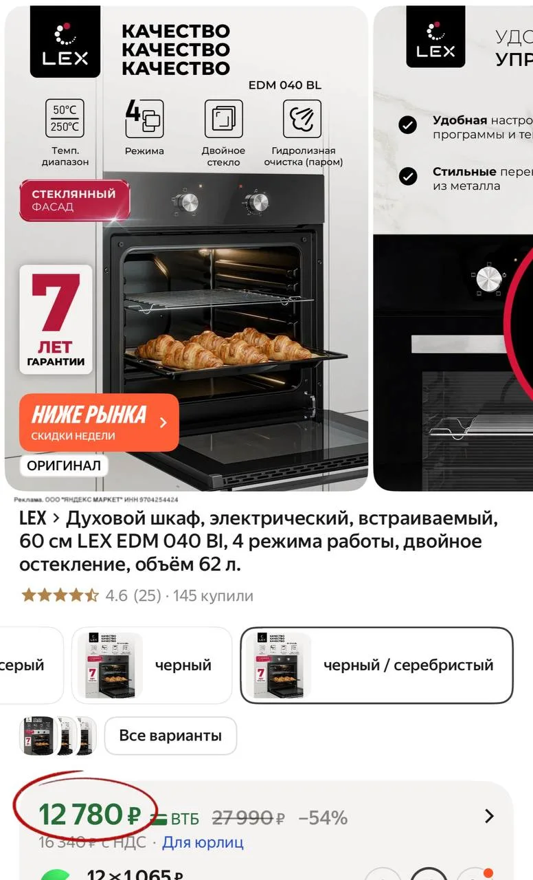 💻 Духовой шкаф, электрический, встраиваемый, 60 см LEX EDM 040 Bl