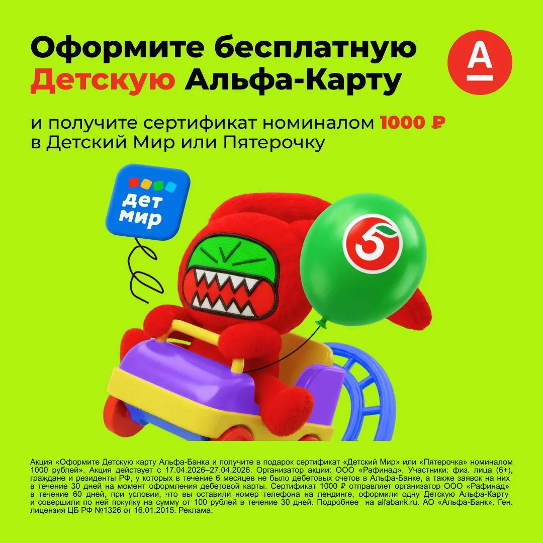 💵 Бесплатная Детская дебетовая карта от Альфа-Банка