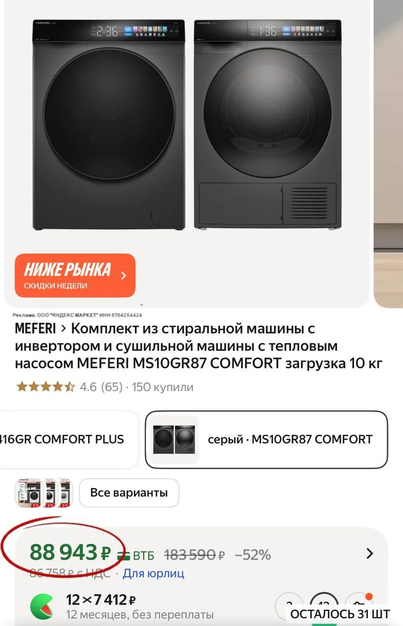 Комплект из стиральной машины с инвертором и сушильной машины с тепловым насосом
