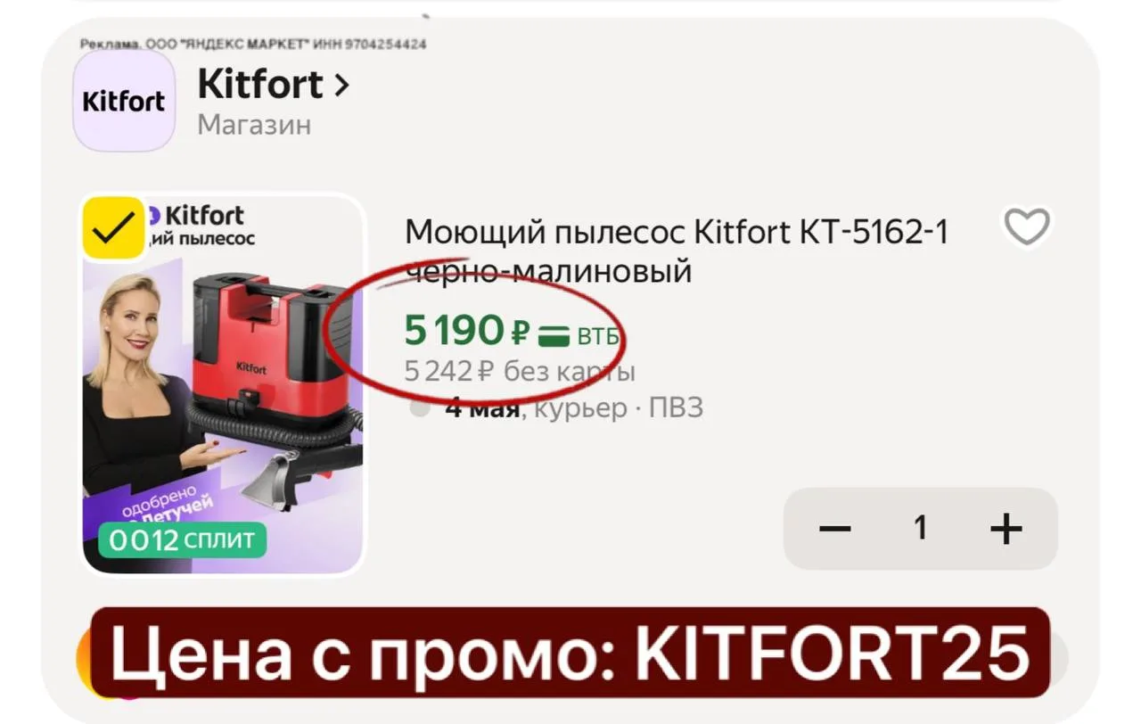 💻 Моющий пылесос Kitfort КТ-5162-1 черно-малиновый 🔥