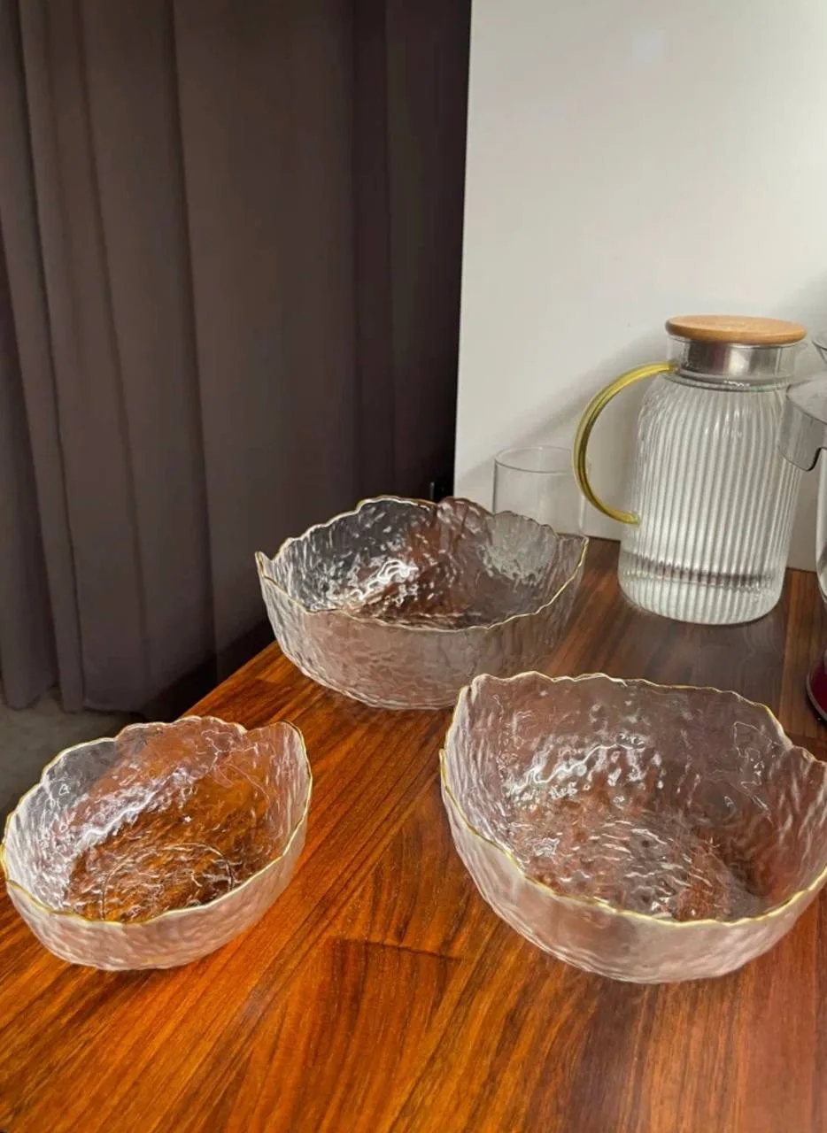 Салатники стеклянные с золотой каймой, набор 3 шт.