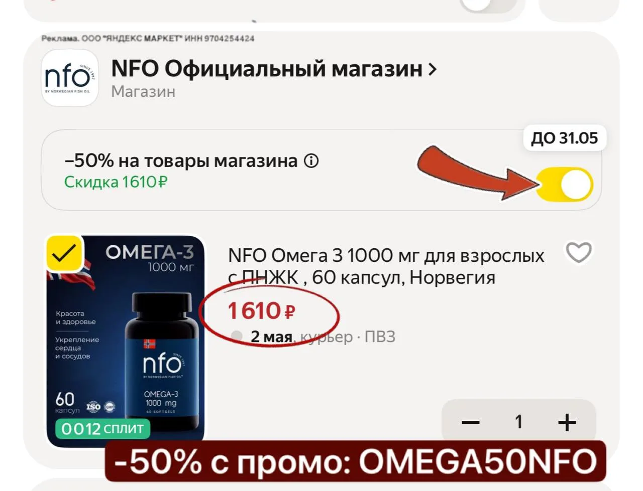 -50% скидка в корзине,нужно сдвинуть бегунок ⏺️