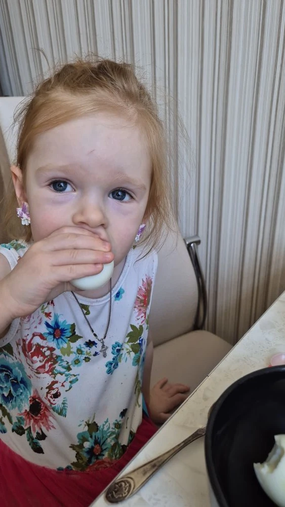Вот реальный пример с моим ребёнком - яйца в виде яйца Кира разлюбила уже очень давно) Может максимум где-то в салате в микро кусочках съесть, либо кусочки омлета.