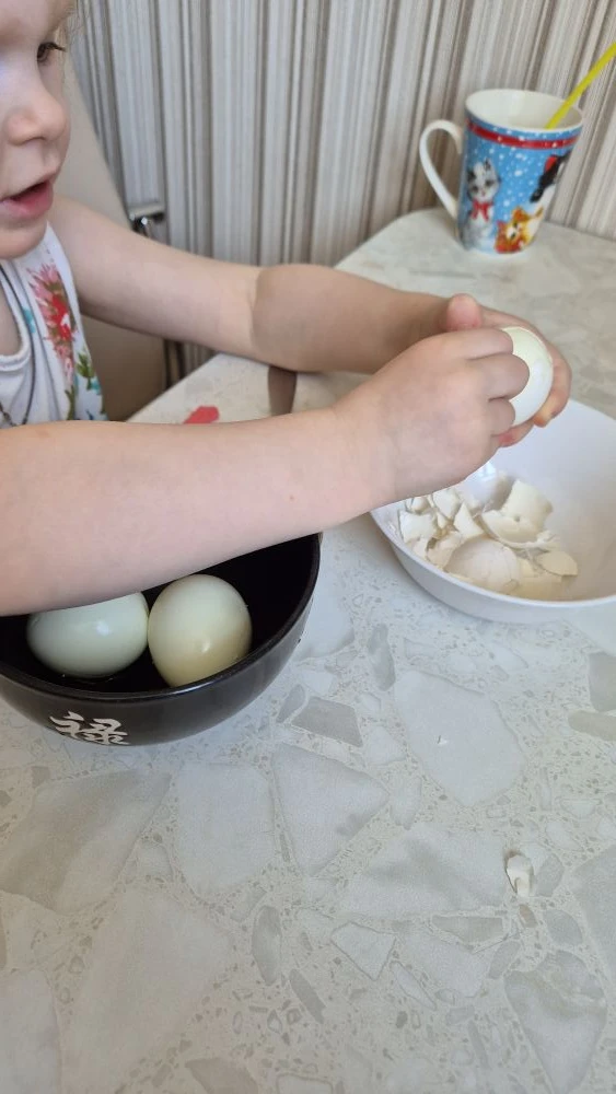 ✅ почистить, треснувшие яйца, это уже ее была инициатива