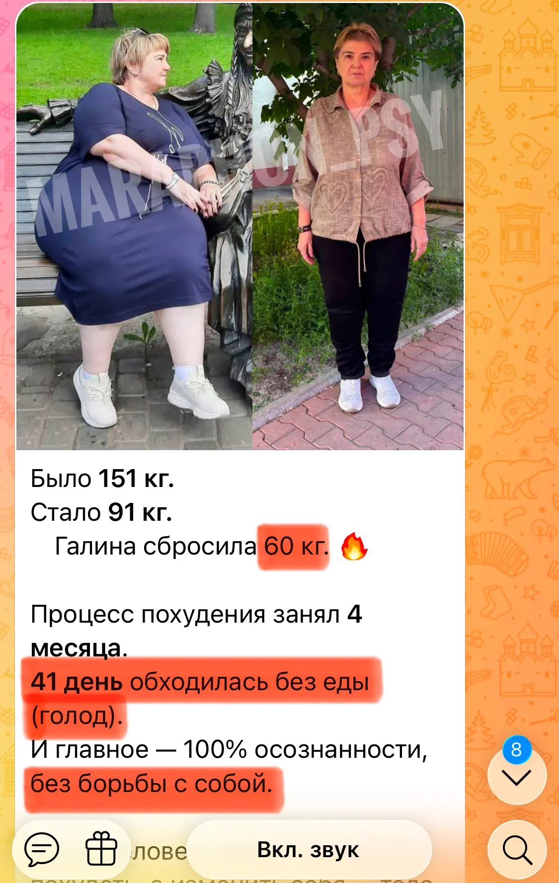 «41 день без еды» — и одновременно «без борьбы с собой».