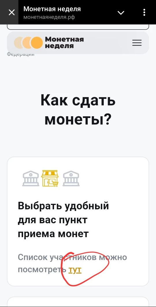 Всю информацию смотрите на официальном сайте: монетнаянеделя.рф (на карте можно посмотреть все пункты приёма в вашем населённом пункте, время работы и условия)