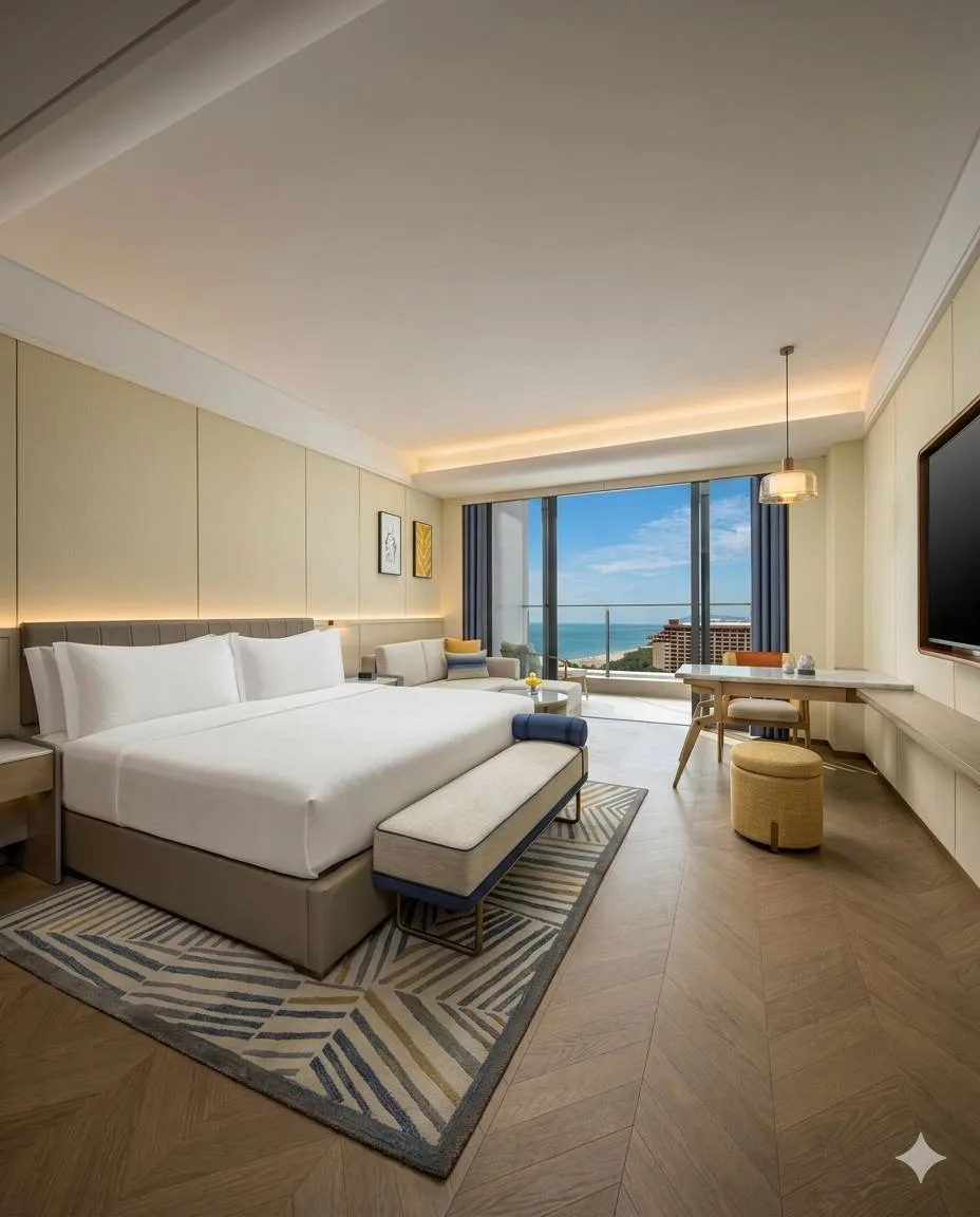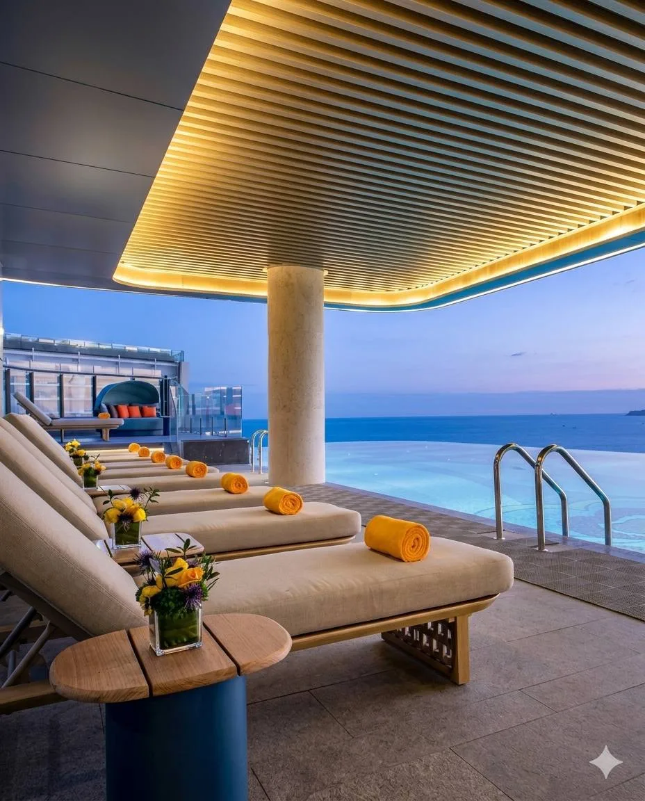 ◽️На территории есть фитнес-центр, детский клуб и бесплатный Wi-Fi, на крыше — открытый бассейн и бар с панорамным видом на бухту Санья.