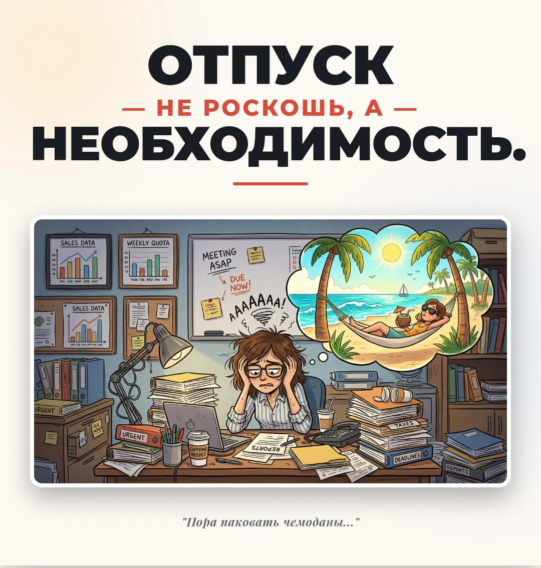 Так что отпуск — это не роскошь и не баловство. Это необходимость, которая напрямую влияет на наше самочувствие, продуктивность и в целом на качество жизни. 💪