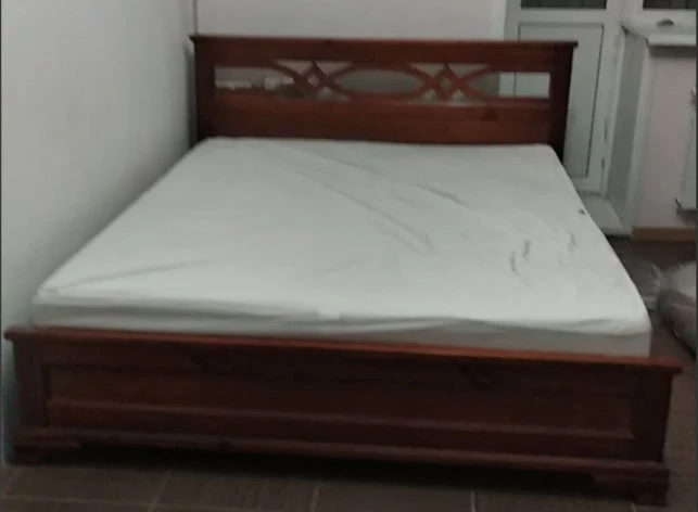 добротную деревянную кровать,