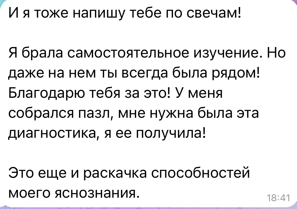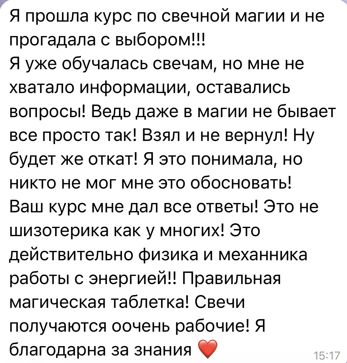 Отзывы моих учениц — это не просто слова благодарности. Это доказательство того, что свечи — это чистая механика работы с энергией.
