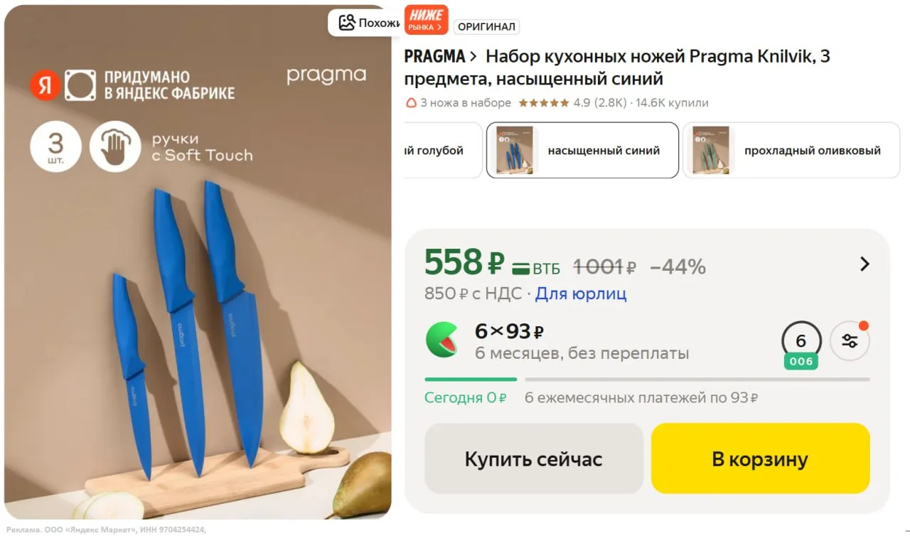 Набор кухонных ножей Pragma Knilvik за 558₽ — https://market.yandex.ru/cc/9EqUte?erid=5jtCeReNx12oajxVWL2rpjy