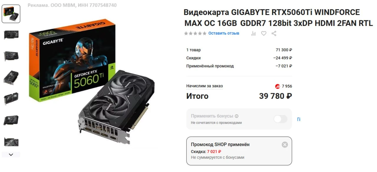 Видеокарта GIGABYTE RTX5060Ti WINDFORCE MAX OC 16GB GDDR7 128bit 3xDP HDMI 2FAN RTL за 39 780₽ с промокодом в М.Видео — https://2ca.ke/AUM?erid=2Vfnxvem8Bs