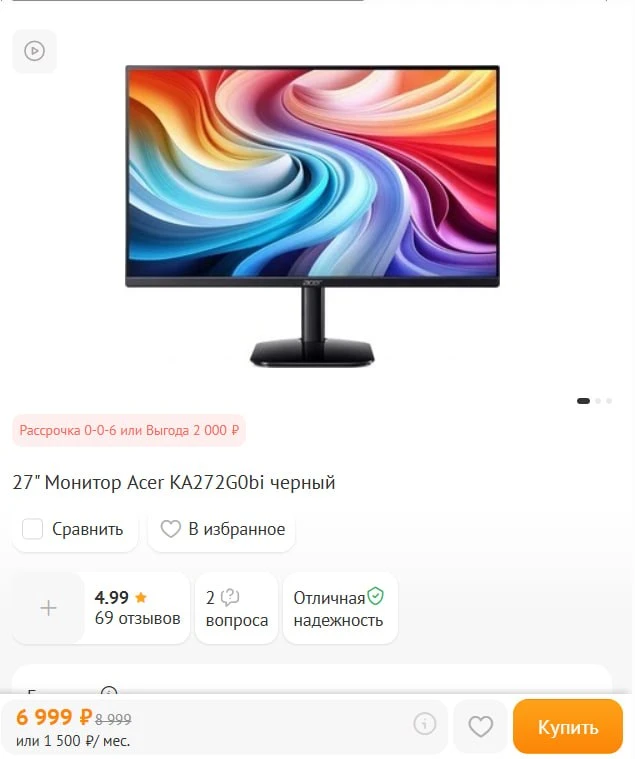Монитор 27" Acer KA272G0bi, IPS, 120 Гц, 1920x1080 за 6 999₽ — https://www.dns-shop.ru/product/56184fbe5002d9cb/27-monitor-acer-ka272g0bi-cernyj