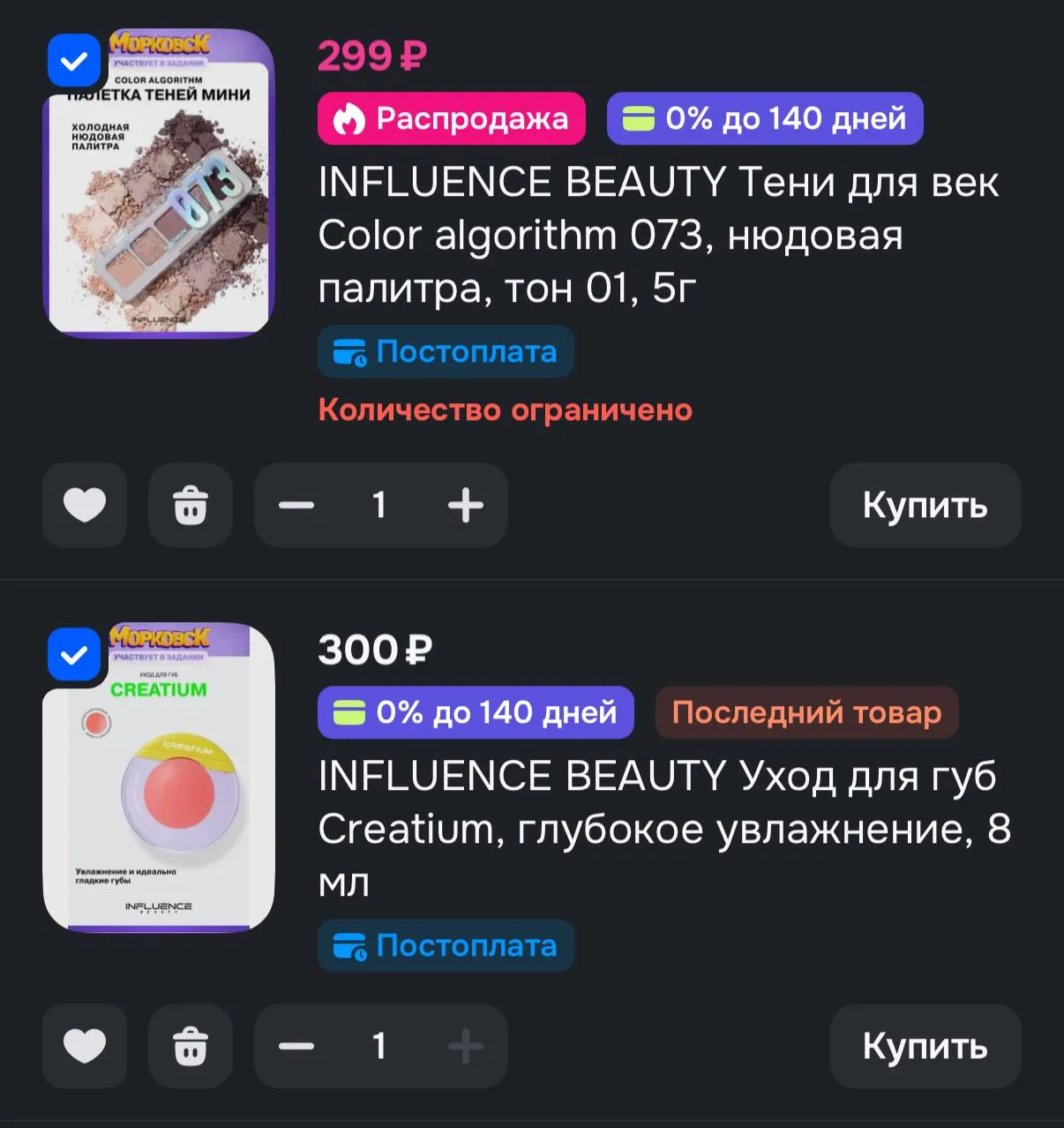 Акция 2=1 на INFLUENCE BEAUTY — https://www.ozon.ru/highlight/uspey-kupit-2-1-ot-influence-beauty-4219048/?sorting=price