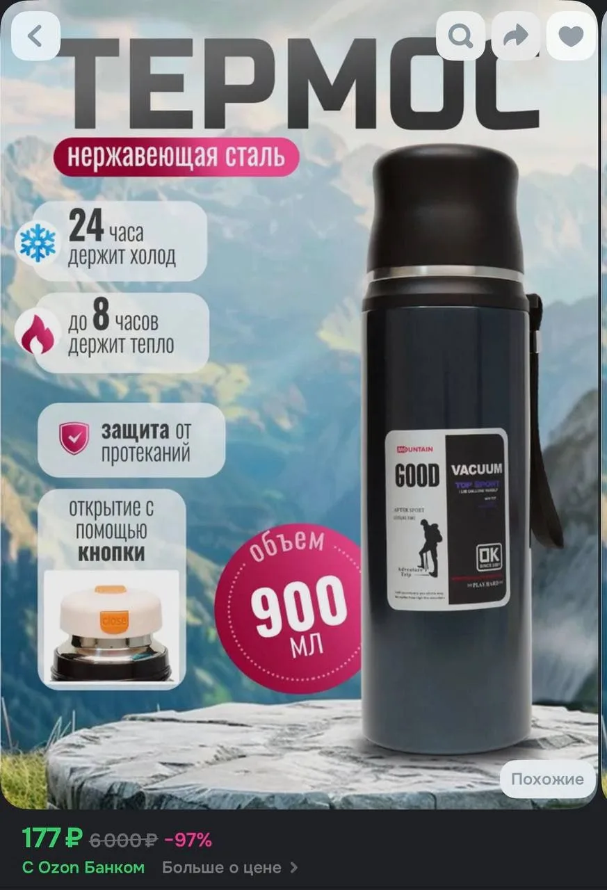 Термос 0.9 л за 177₽ — https://ozon.ru/t/5UwkIKh