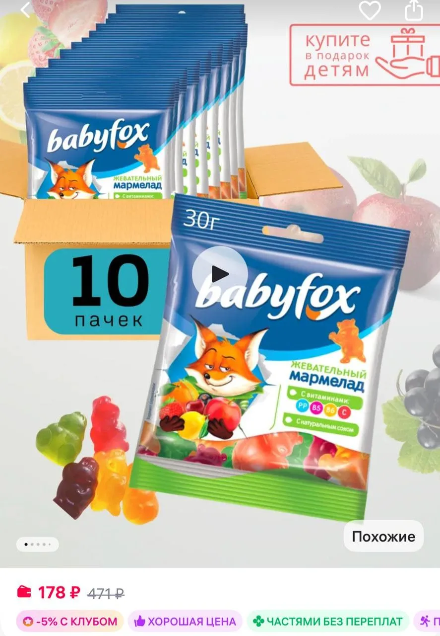 KDV Мармелад жевательный Babyfox сладкий подарок детям за 178₽ — https://www.wildberries.ru/catalog/88949326/detail.aspx?size=143939185