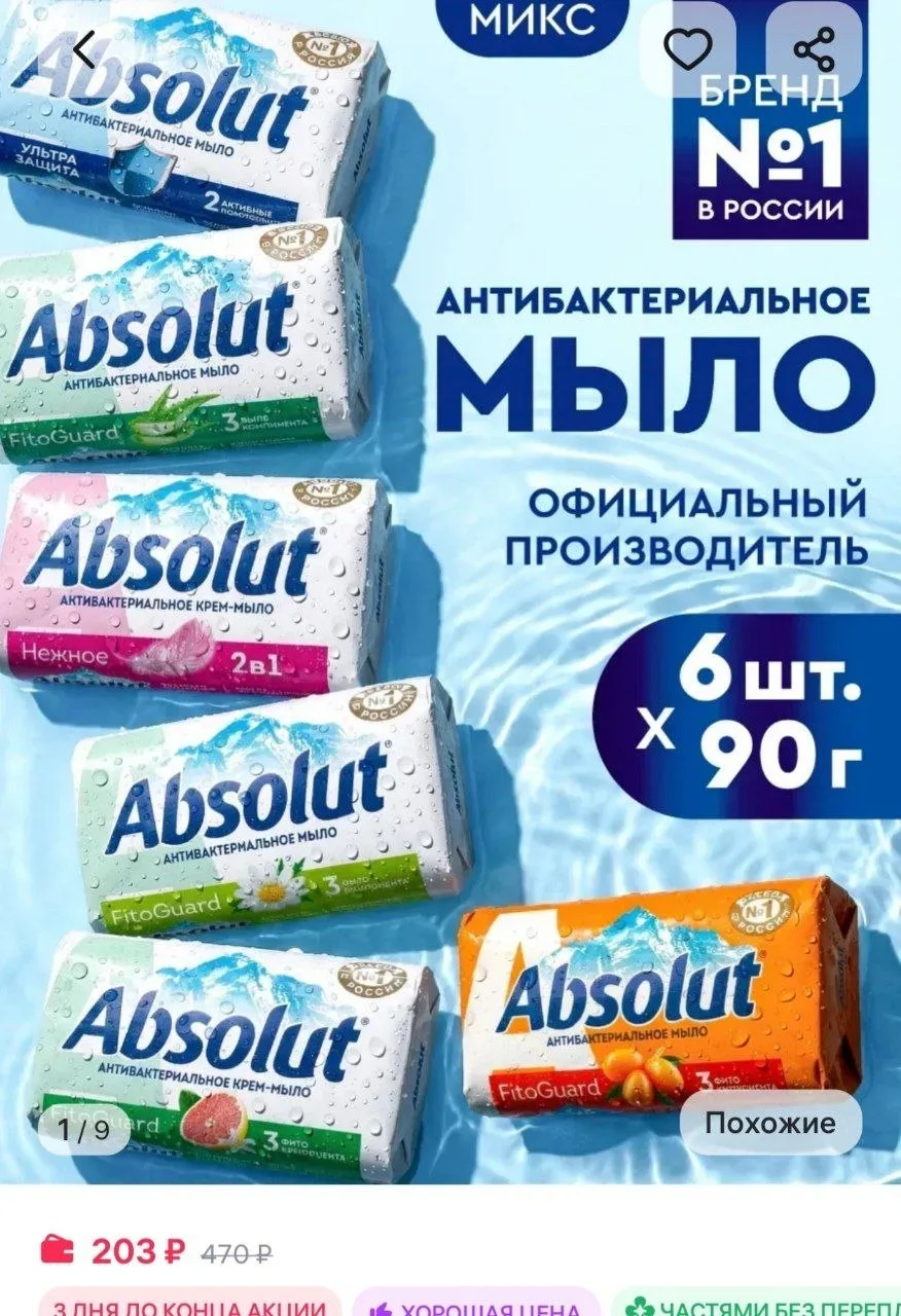 Мыло антибактериальное туалетное твердое микс №1 6х90 гр за 203₽ — https://www.wildberries.ru/catalog/379837094/detail.aspx?size=552645185