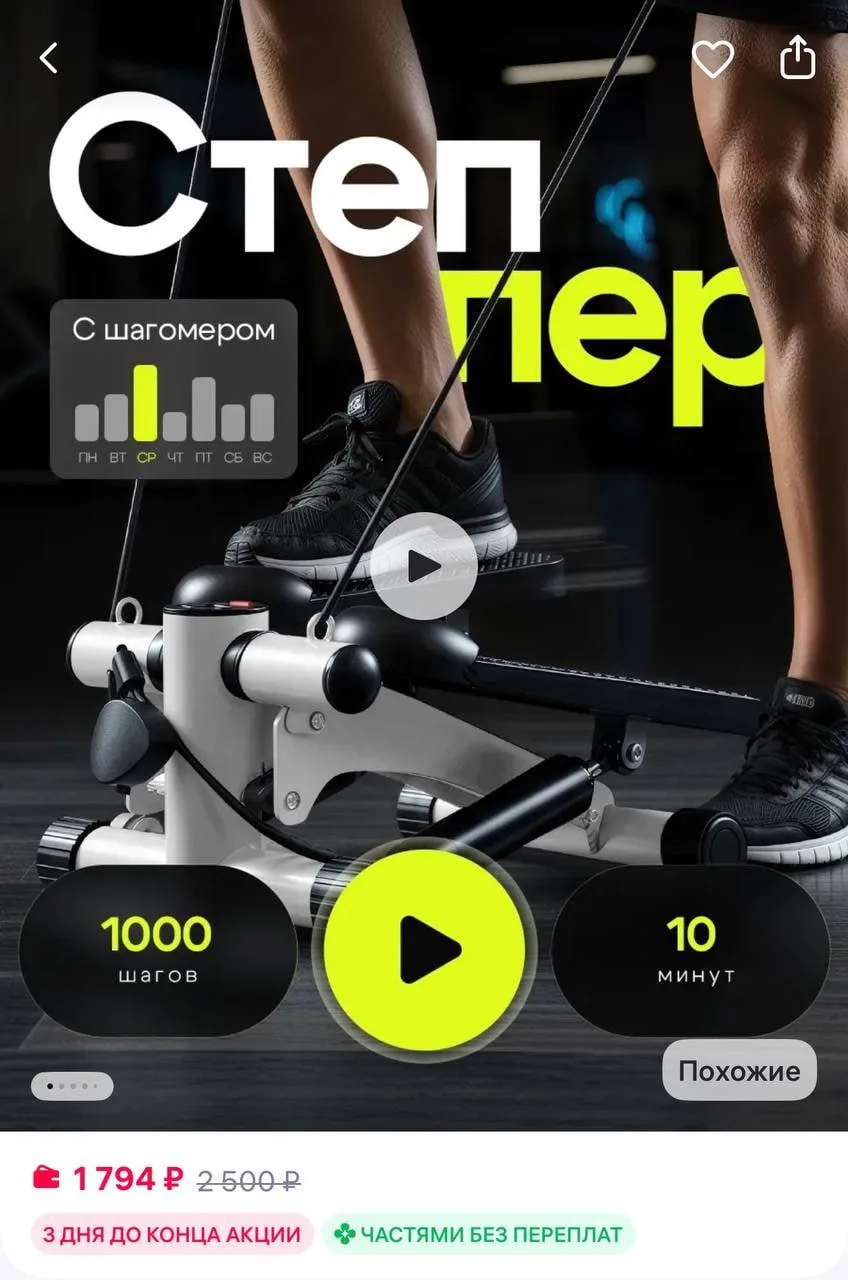 Everpeak Степпер тренажер для ног и ягодиц с эспандерами за 1 794₽ — https://www.wildberries.ru/catalog/523556080/detail.aspx?size=722756703